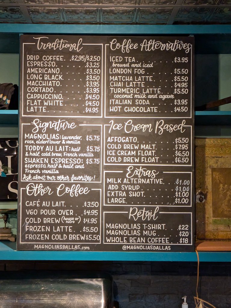 As for parking, it might pose a challenge at busy times, but the journey is worth your while. Whether you're a Dallas local or just passing through, Magnolias Sous Le Pont promises an experience enriched by flavor and community spirit. So, stop by and bask in the inviting energy and exceptional drinks that await you here. You won’t regret it!